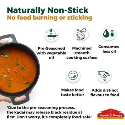 MAINTENANCE- Always store in a clean, dry place. After use, cookware must be dried well. (always best to reheat it till all the moisture evaporates.) For maintaining seasoning; rub a bit of oil on the cookware, once it's completely dry. Avoid contact with moisture. Use gentle scrubs, cleansers, and spatulas/ladles.